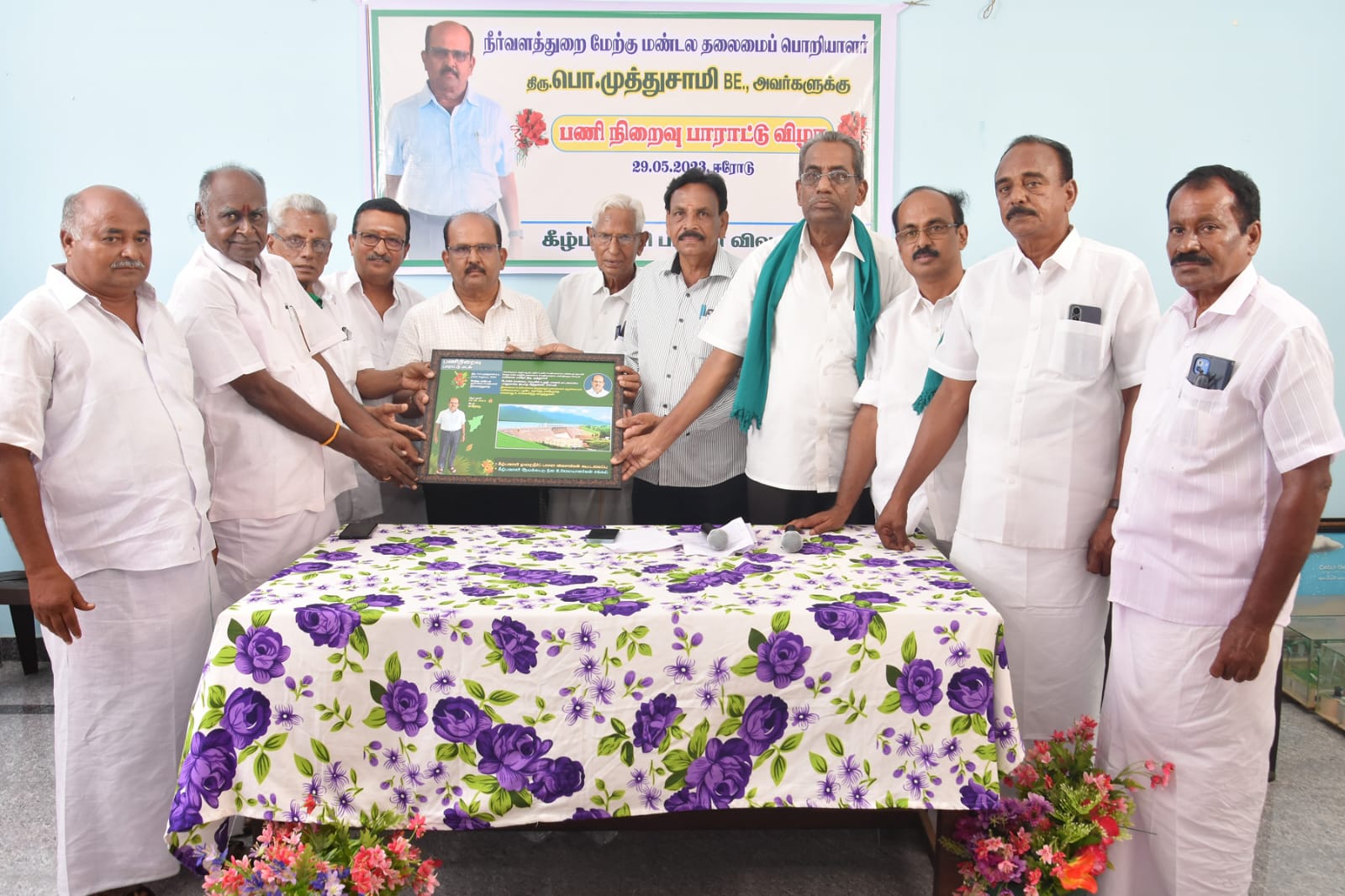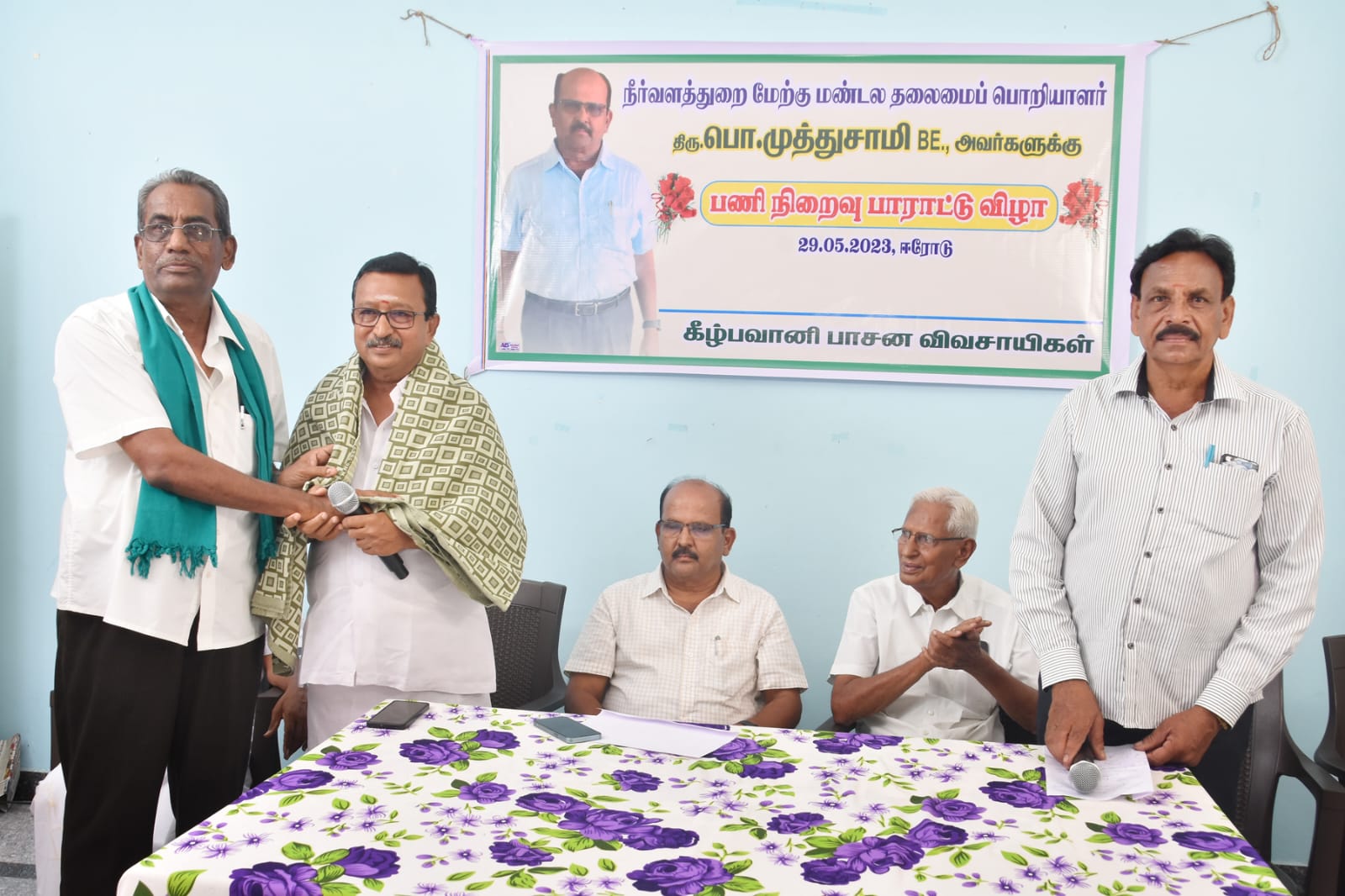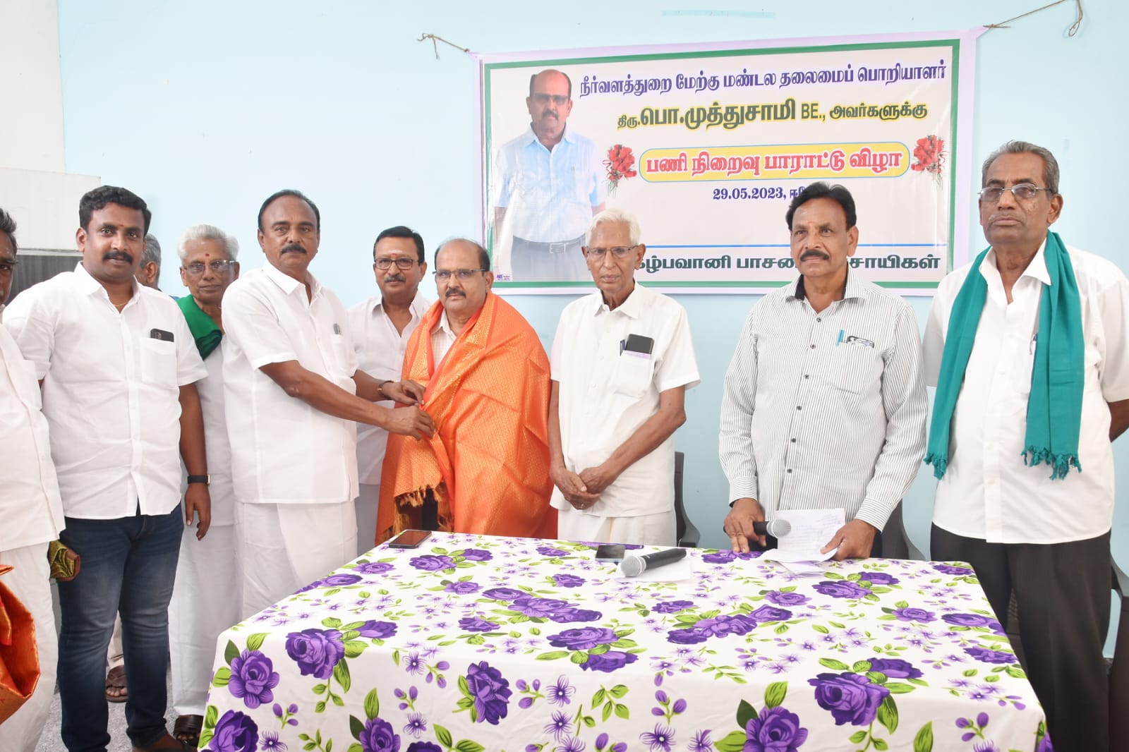 மேற்கு மண்டலத்தின் நீர்வளத் துறை தலைமை பொறியாளராக கடந்த ஒன்றரை ஆண்டு காலம் பணியாற்றி நாளை(31/05/2023) பணி நிறைவு செய்யவுள்ள பொறிஞர் திரு பொ. முத்துசாமி அவர்களுக்கு பாராட்டு நிகழ்வு ஈரோட்டில்(29/05/2023) நடத்தப்பட்டது.