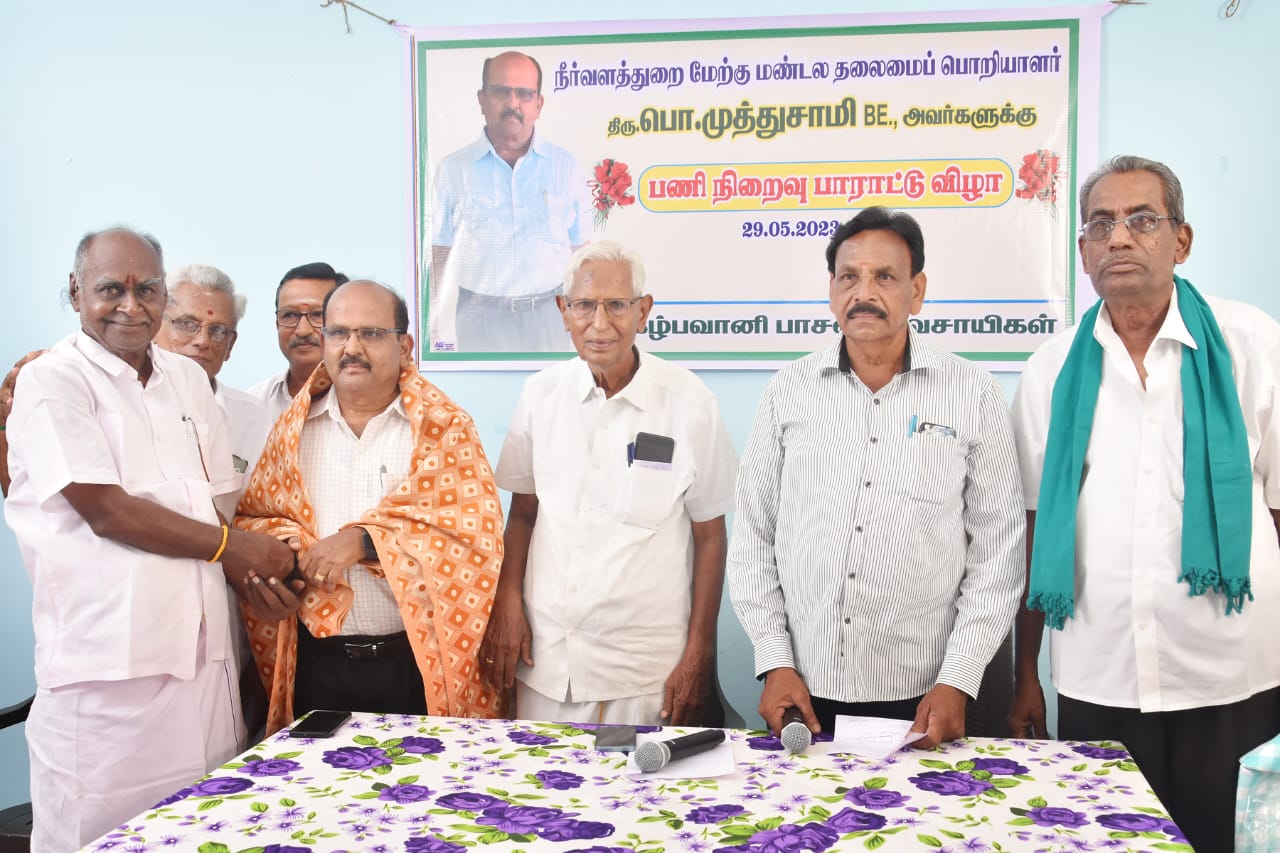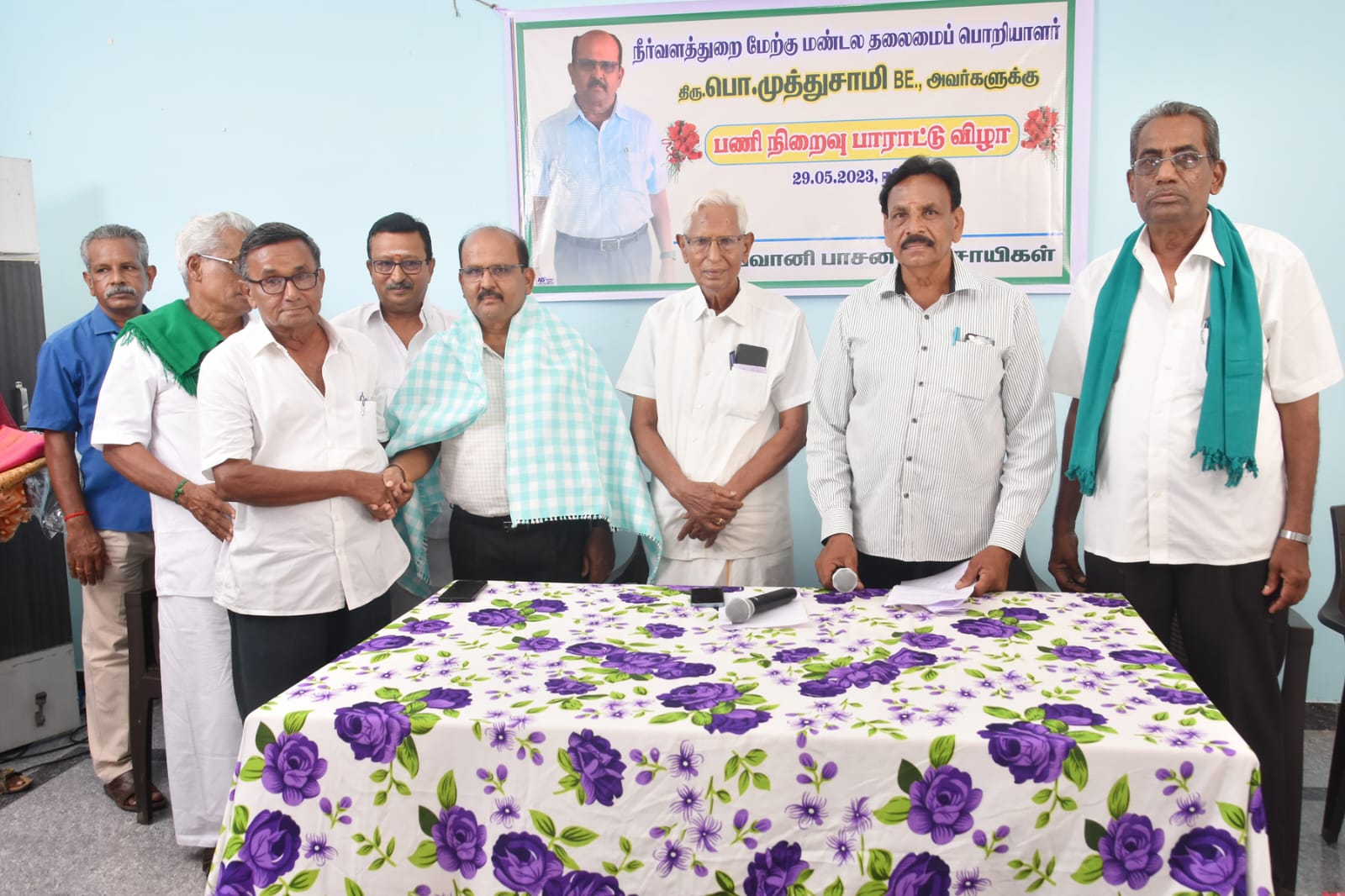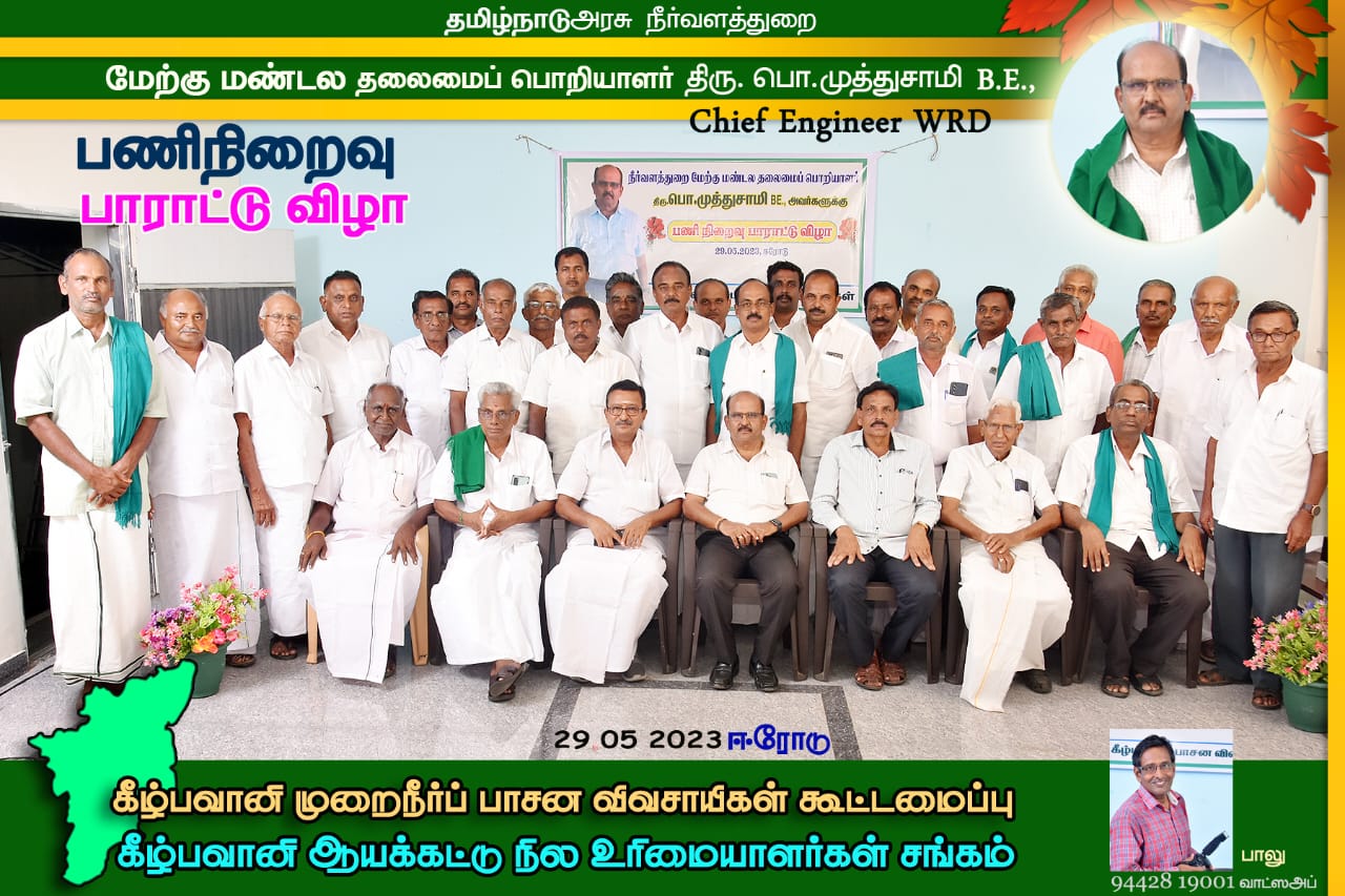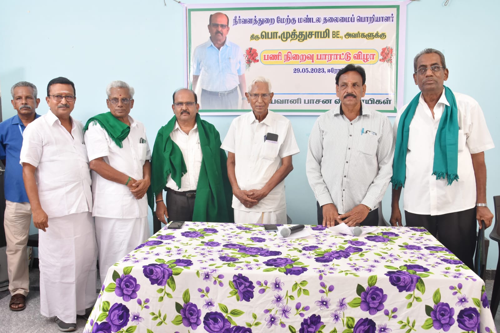 மேற்கு மண்டலத்தின் நீர்வளத் துறை தலைமை பொறியாளராக கடந்த ஒன்றரை ஆண்டு காலம் பணியாற்றி நாளை(31/05/2023) பணி நிறைவு செய்யவுள்ள பொறிஞர் திரு பொ. முத்துசாமி அவர்களுக்கு பாராட்டு நிகழ்வு ஈரோட்டில்(29/05/2023) நடத்தப்பட்டது.