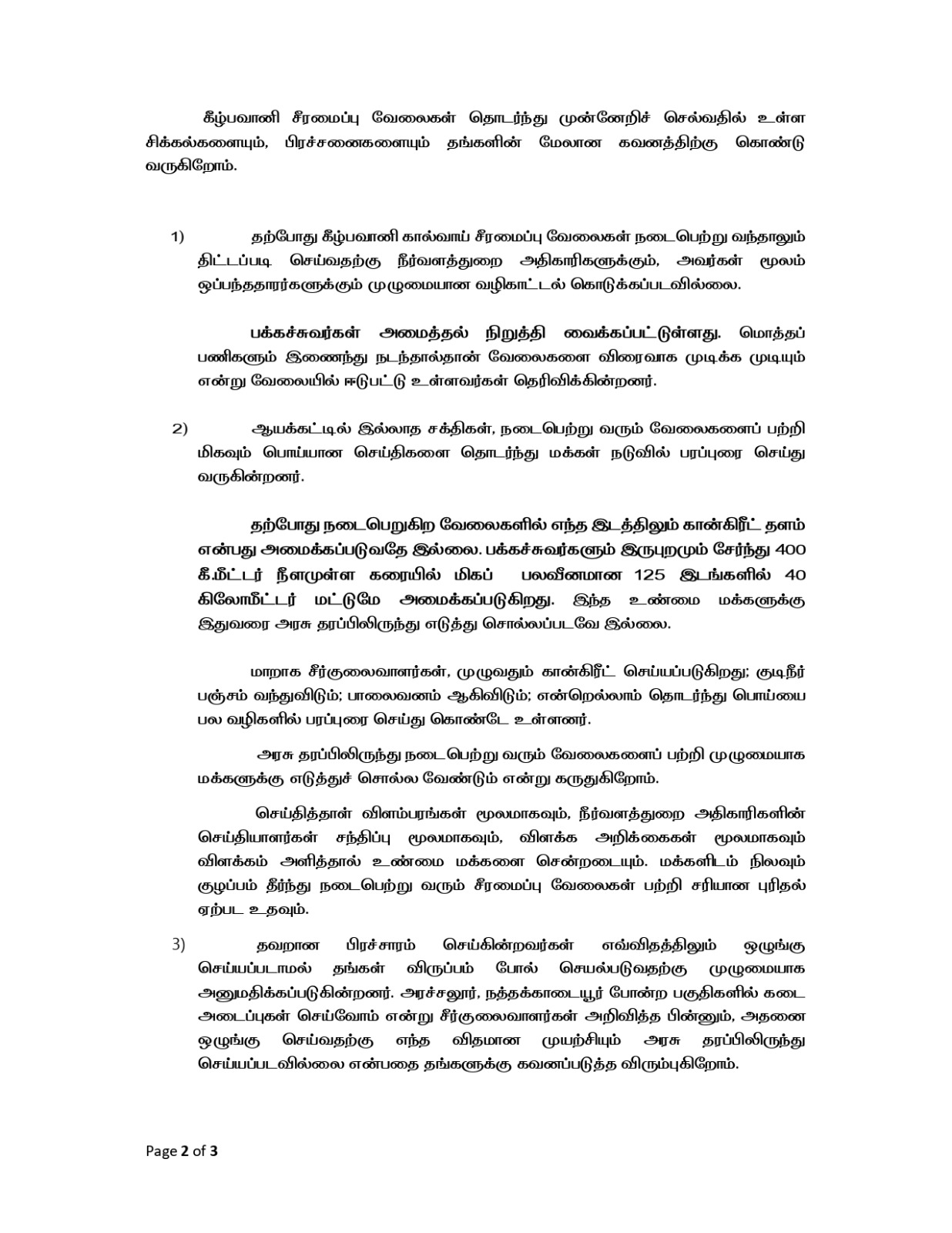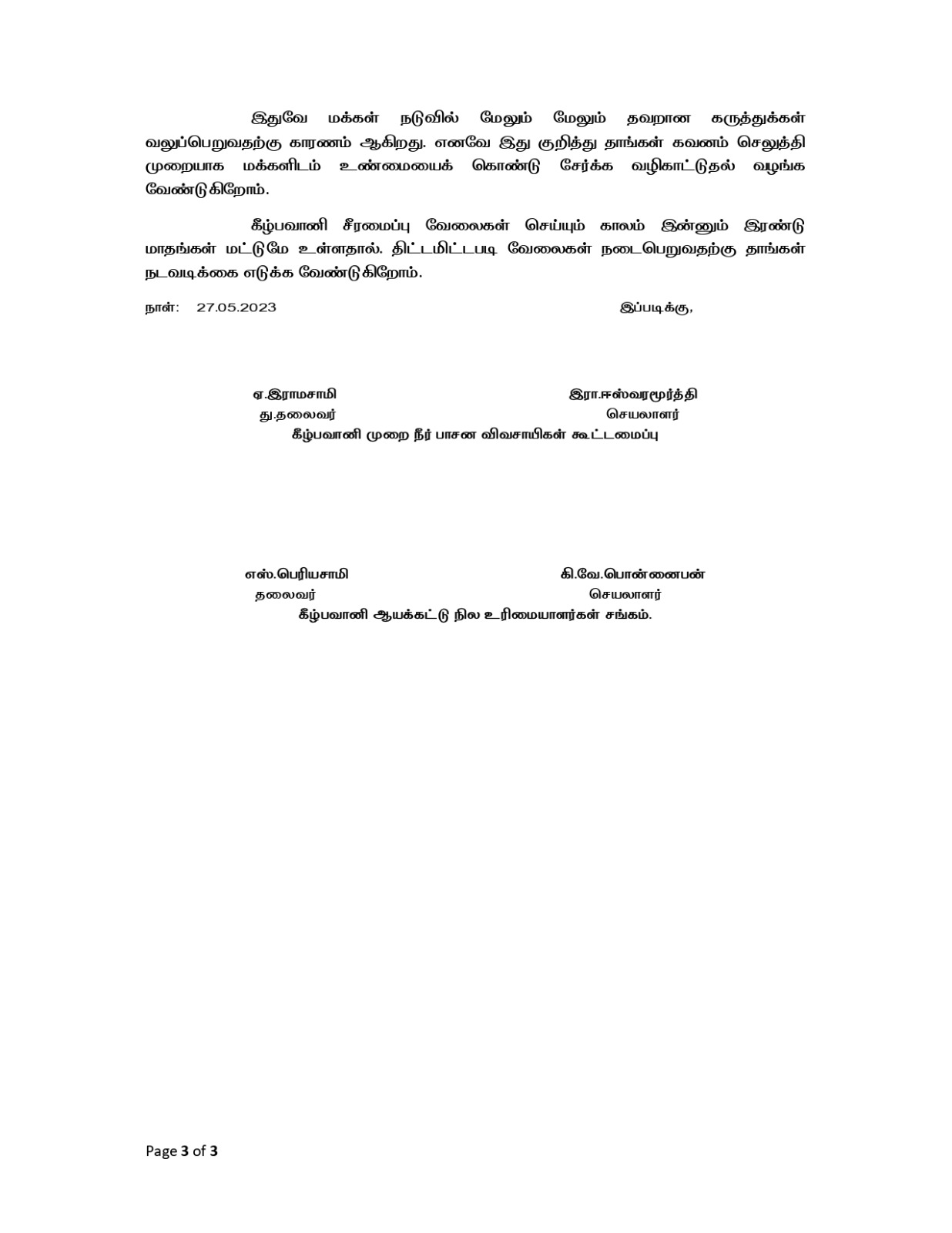 கீழ்பவானி பிரதான கால்வாய் மைல் 35/6 என்ற இடத்தில் உள்ள அவசர கால நீர் போக்கியை உடைத்து தண்ணீர் திருட்டில் ஈடுபட்டது. அடுத்து பிரதான கால்வாய் மைல் 40-5 என்ற இ...